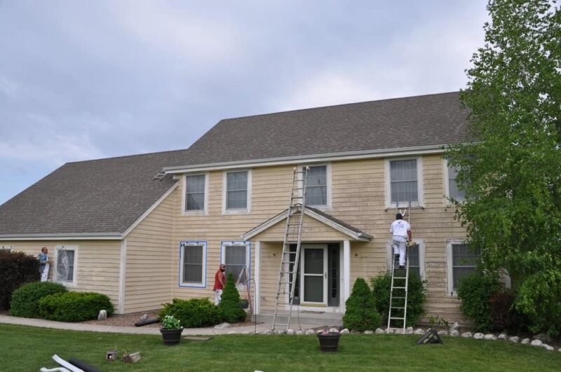 This Sussex colonial home was ready for exterior painting & related services. Before our crew arrived, years of Wisconsin weather wear had caused peeling paint along the siding and trim. The color faded into a muted tone of its former self.